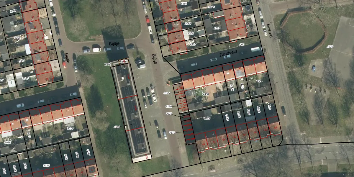 Het perceel waarop Bijltje 2-G12 staat heeft een oppervlakte van 45 m². Dit is een klein perceel. De perceeloppervlakte wordt geregistreerd door het Kadaster. Gedetailleerde informatie over de maten van dit perceel kunt u vinden in het rapport Kadastrale kaart met maatvoering van Bijltje 2-G12.