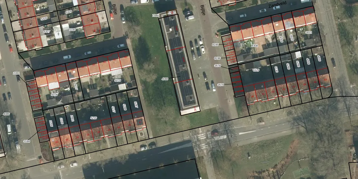 Het perceel waarop Bijltje 3-C staat heeft een oppervlakte van 615 m². Dit is een groot perceel. De perceeloppervlakte wordt geregistreerd door het Kadaster. Gedetailleerde informatie over de maten van dit perceel kunt u vinden in het rapport Kadastrale kaart met maatvoering van Bijltje 3-C.