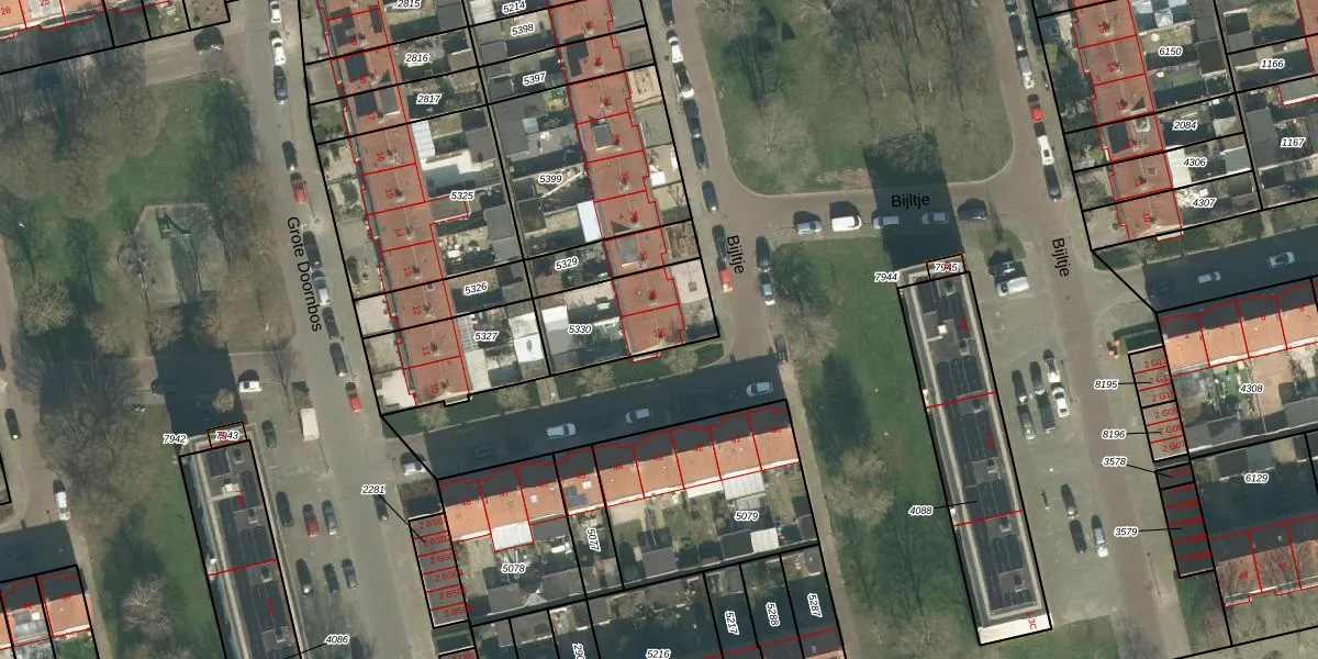 Het perceel waarop Bijltje 39 staat heeft een oppervlakte van 317 m². Dit is een groot perceel. De perceeloppervlakte wordt geregistreerd door het Kadaster. Gedetailleerde informatie over de maten van dit perceel kunt u vinden in het rapport Kadastrale kaart met maatvoering van Bijltje 39.