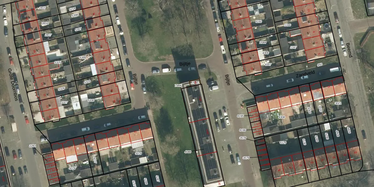 Het perceel waarop Bijltje 9-C staat heeft een oppervlakte van 615 m². Dit is een groot perceel. De perceeloppervlakte wordt geregistreerd door het Kadaster. Gedetailleerde informatie over de maten van dit perceel kunt u vinden in het rapport Kadastrale kaart met maatvoering van Bijltje 9-C.