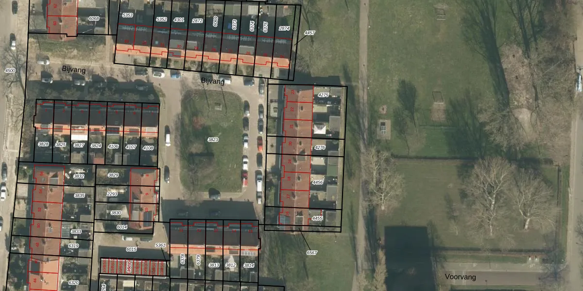 Het perceel waarop Bijvang 20 staat heeft een oppervlakte van 160 m². Dit is een middelgroot perceel. De perceeloppervlakte wordt geregistreerd door het Kadaster. Gedetailleerde informatie over de maten van dit perceel kunt u vinden in het rapport Kadastrale kaart met maatvoering van Bijvang 20.