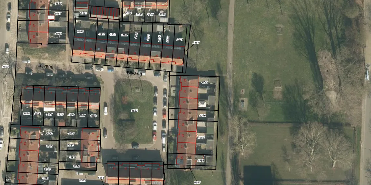 Het perceel waarop Bijvang 22 staat heeft een oppervlakte van 482 m². Dit is een groot perceel. De perceeloppervlakte wordt geregistreerd door het Kadaster. Gedetailleerde informatie over de maten van dit perceel kunt u vinden in het rapport Kadastrale kaart met maatvoering van Bijvang 22.