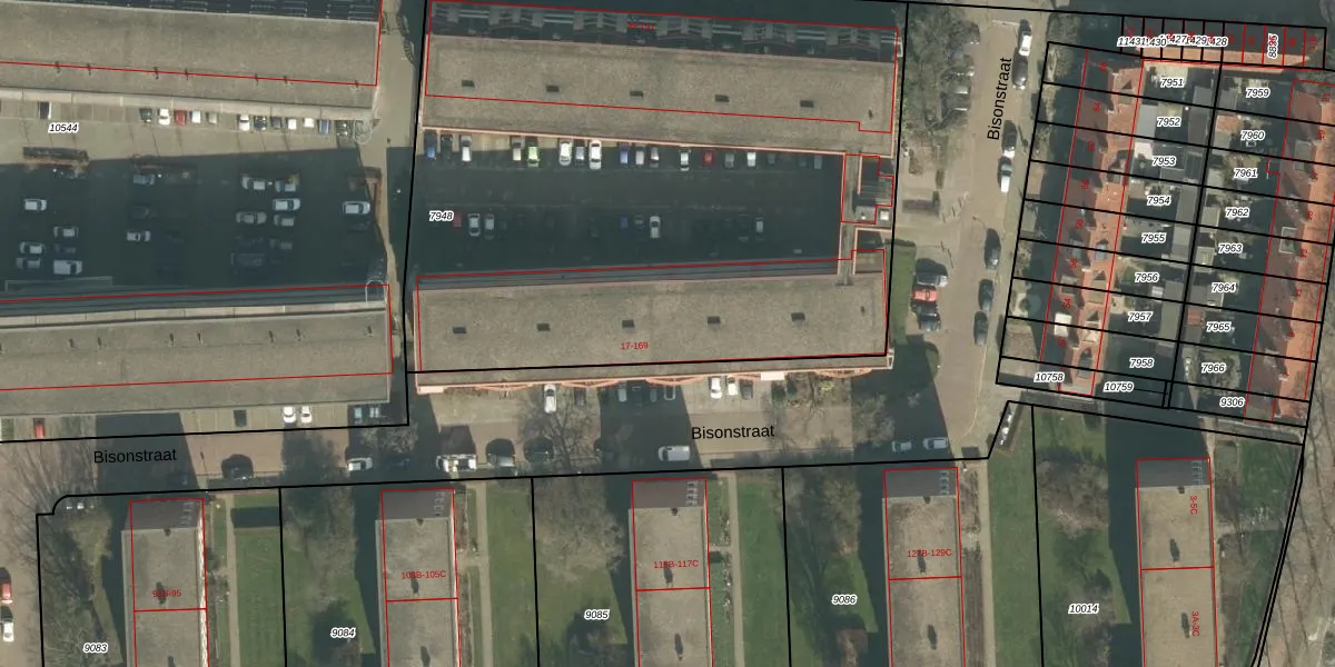 Bisonstraat 109 is gelegen op kadastraal perceel BDA00D7948. Deze kadastrale aanduiding is uniek en wordt gebruikt door het Kadaster om eigendomsrechten en andere zakelijke rechten vast te leggen. Het perceel maakt onderdeel uit van de kadastrale gemeente Breda.