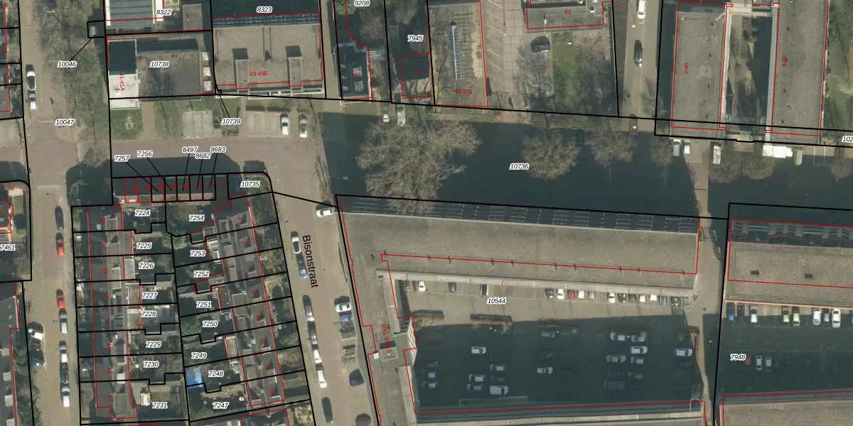 Het perceel waarop Bisonstraat 3-A9 staat heeft een oppervlakte van 5665 m². Dit is een zeer groot perceel. De perceeloppervlakte wordt geregistreerd door het Kadaster. Gedetailleerde informatie over de maten van dit perceel kunt u vinden in het rapport Kadastrale kaart met maatvoering van Bisonstraat 3-A9.