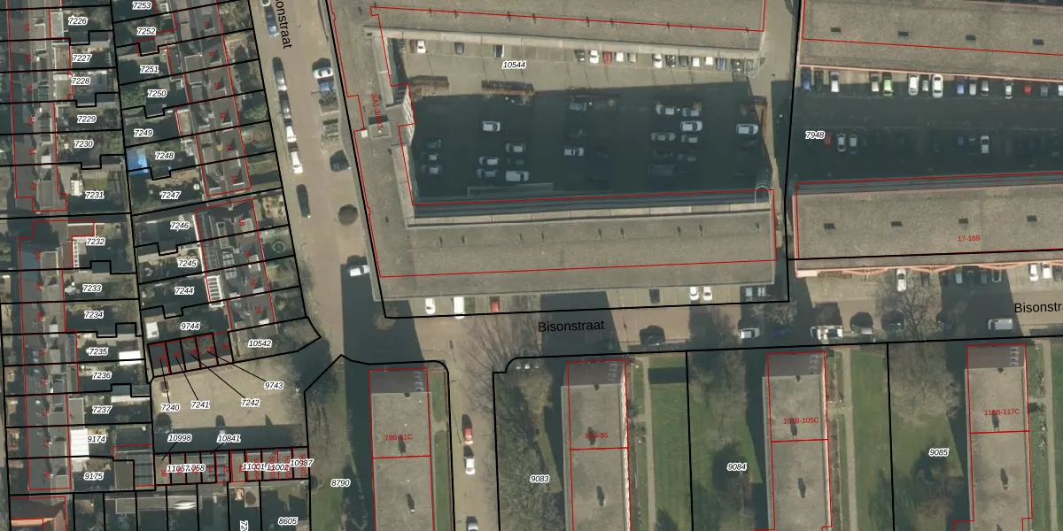 Het perceel waarop Bisonstraat 3-A18 staat heeft een oppervlakte van 5665 m². Dit is een zeer groot perceel. De perceeloppervlakte wordt geregistreerd door het Kadaster. Gedetailleerde informatie over de maten van dit perceel kunt u vinden in het rapport Kadastrale kaart met maatvoering van Bisonstraat 3-A18.