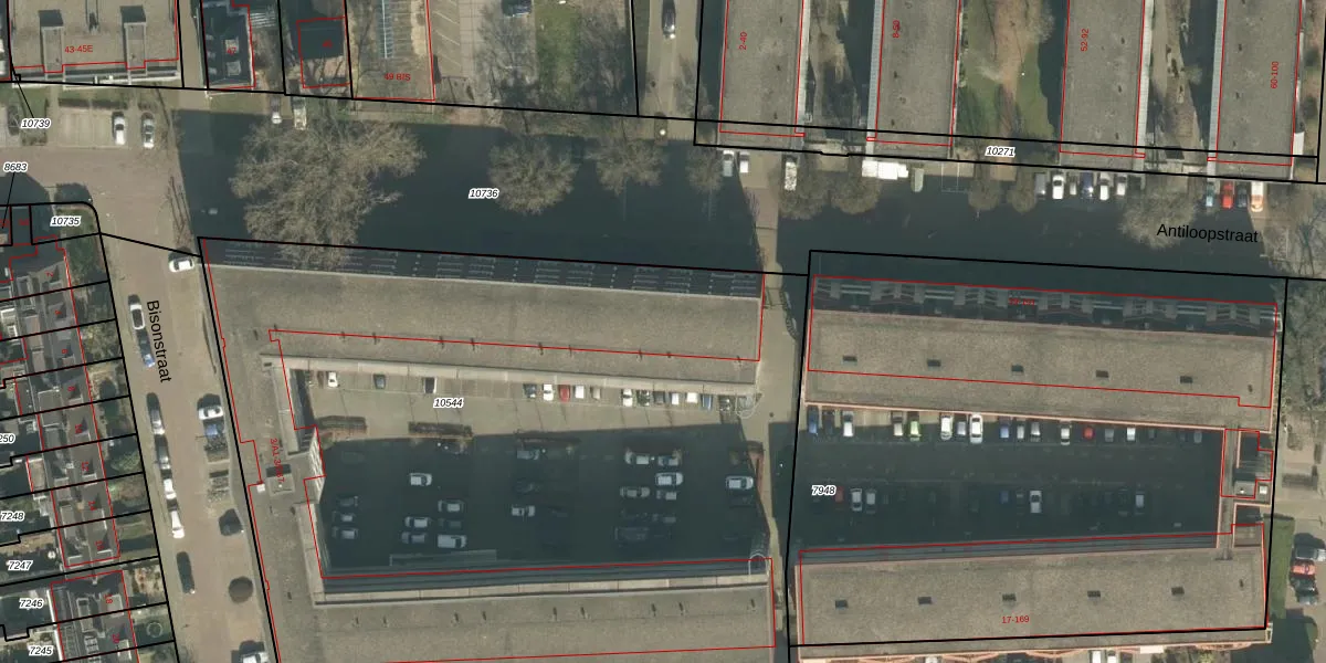 Het perceel waarop Bisonstraat 3-C43 staat heeft een oppervlakte van 5665 m². Dit is een zeer groot perceel. De perceeloppervlakte wordt geregistreerd door het Kadaster. Gedetailleerde informatie over de maten van dit perceel kunt u vinden in het rapport Kadastrale kaart met maatvoering van Bisonstraat 3-C43.