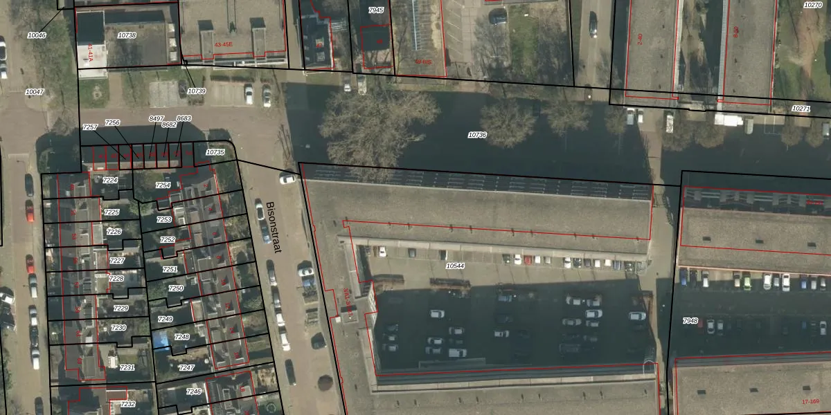 Het perceel waarop Bisonstraat 3-C49 staat heeft een oppervlakte van 5665 m². Dit is een zeer groot perceel. De perceeloppervlakte wordt geregistreerd door het Kadaster. Gedetailleerde informatie over de maten van dit perceel kunt u vinden in het rapport Kadastrale kaart met maatvoering van Bisonstraat 3-C49.