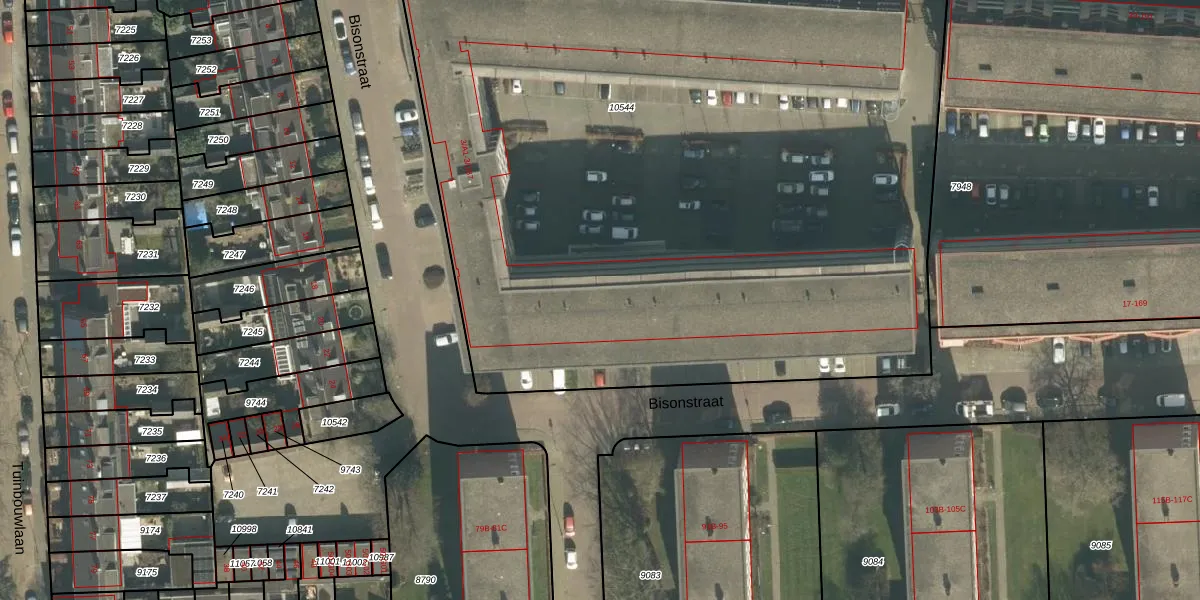 Bisonstraat 3-C58 is gelegen op kadastraal perceel BDA00D10544. Deze kadastrale aanduiding is uniek en wordt gebruikt door het Kadaster om eigendomsrechten en andere zakelijke rechten vast te leggen. Het perceel maakt onderdeel uit van de kadastrale gemeente Breda.