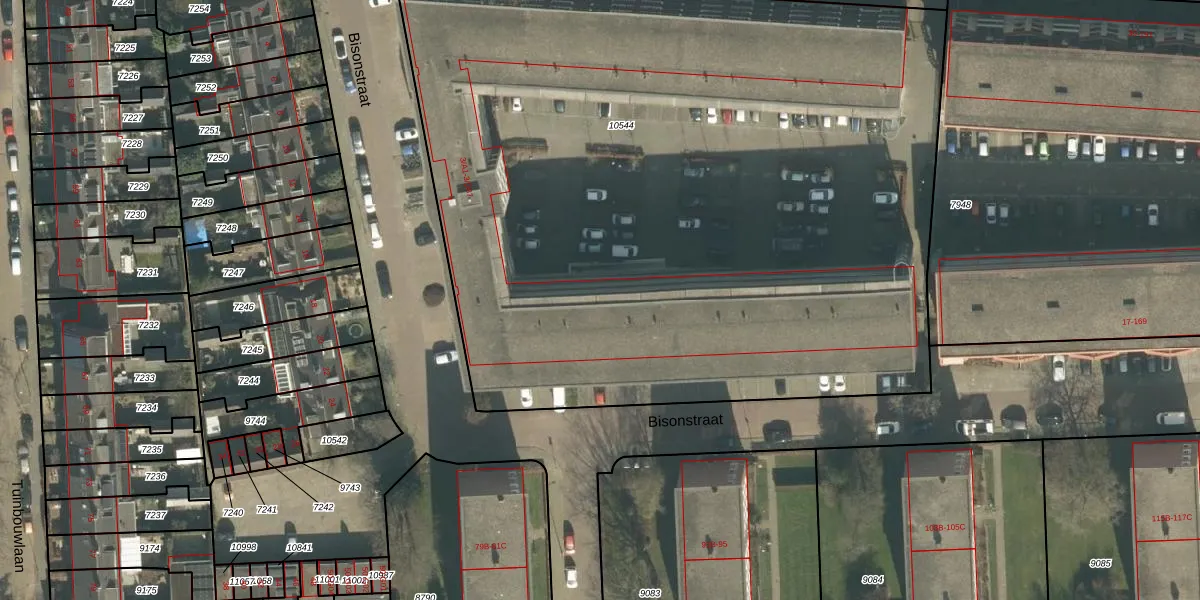 Het perceel waarop Bisonstraat 3-D81 staat heeft een oppervlakte van 5665 m². Dit is een zeer groot perceel. De perceeloppervlakte wordt geregistreerd door het Kadaster. Gedetailleerde informatie over de maten van dit perceel kunt u vinden in het rapport Kadastrale kaart met maatvoering van Bisonstraat 3-D81.