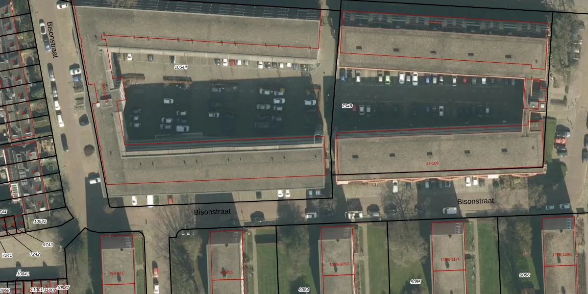 Het perceel waarop Bisonstraat 3-D87 staat heeft een oppervlakte van 5665 m². Dit is een zeer groot perceel. De perceeloppervlakte wordt geregistreerd door het Kadaster. Gedetailleerde informatie over de maten van dit perceel kunt u vinden in het rapport Kadastrale kaart met maatvoering van Bisonstraat 3-D87.