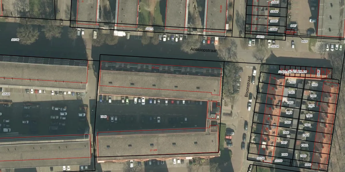 Het perceel waarop Bisonstraat 49 staat heeft een oppervlakte van 4100 m². Dit is een zeer groot perceel. De perceeloppervlakte wordt geregistreerd door het Kadaster. Gedetailleerde informatie over de maten van dit perceel kunt u vinden in het rapport Kadastrale kaart met maatvoering van Bisonstraat 49.