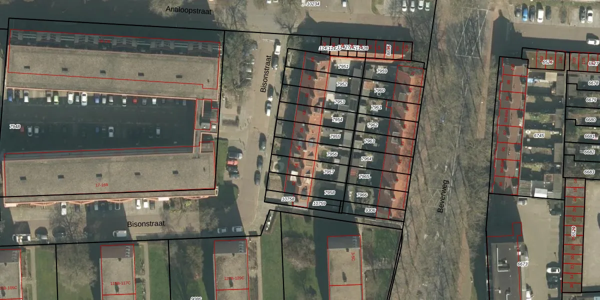 Het perceel waarop Bisonstraat 56 staat heeft een oppervlakte van 154 m². Dit is een middelgroot perceel. De perceeloppervlakte wordt geregistreerd door het Kadaster. Gedetailleerde informatie over de maten van dit perceel kunt u vinden in het rapport Kadastrale kaart met maatvoering van Bisonstraat 56.
