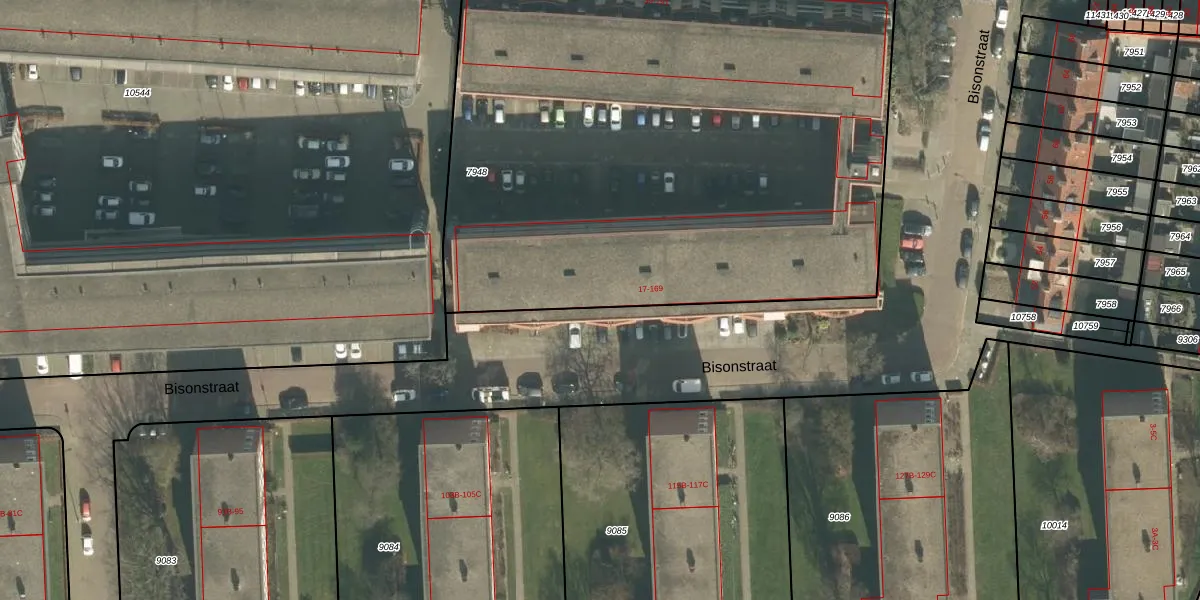 Bisonstraat 71 is gelegen op kadastraal perceel BDA00D7948. Deze kadastrale aanduiding is uniek en wordt gebruikt door het Kadaster om eigendomsrechten en andere zakelijke rechten vast te leggen. Het perceel maakt onderdeel uit van de kadastrale gemeente Breda.