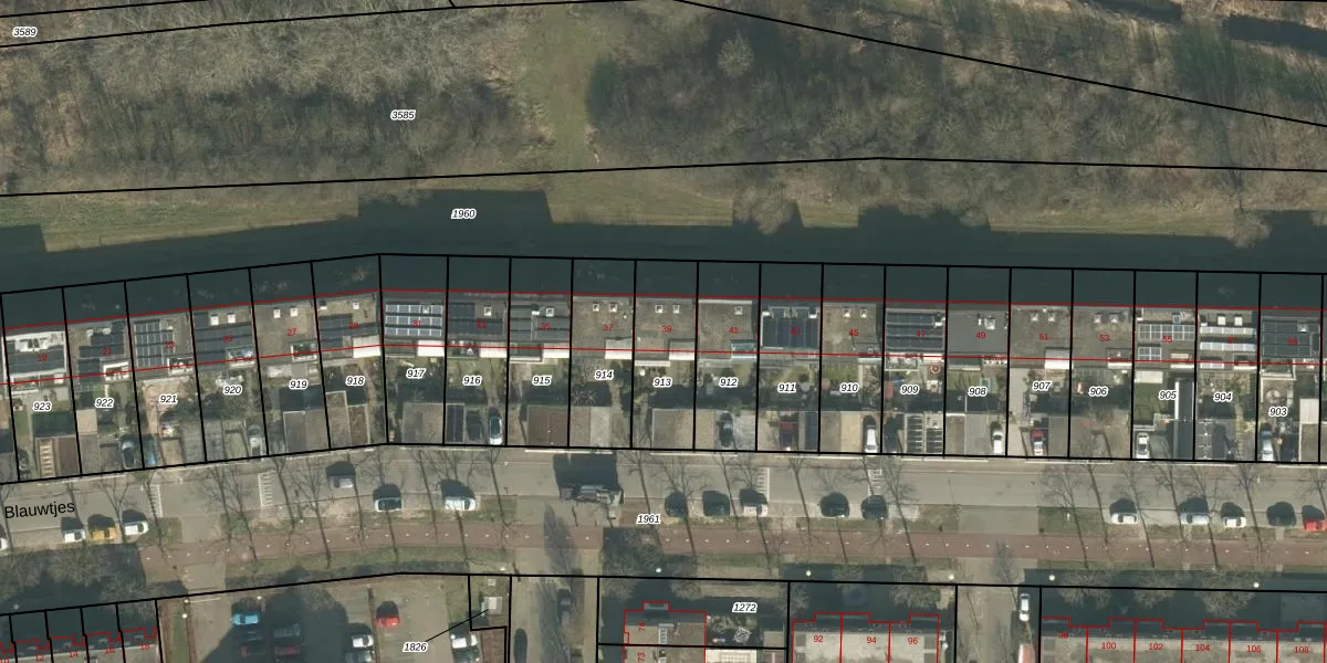 Blauwtjes 39 is gelegen op kadastraal perceel PCH00P913. Deze kadastrale aanduiding is uniek en wordt gebruikt door het Kadaster om eigendomsrechten en andere zakelijke rechten vast te leggen. Het perceel maakt onderdeel uit van de kadastrale gemeente Princenhage.