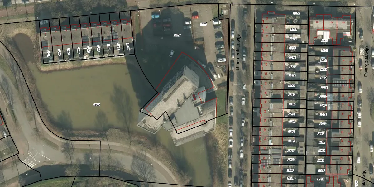 Het perceel waarop Blauwtjes 46 staat heeft een oppervlakte van 2862 m². Dit is een zeer groot perceel. De perceeloppervlakte wordt geregistreerd door het Kadaster. Gedetailleerde informatie over de maten van dit perceel kunt u vinden in het rapport Kadastrale kaart met maatvoering van Blauwtjes 46.