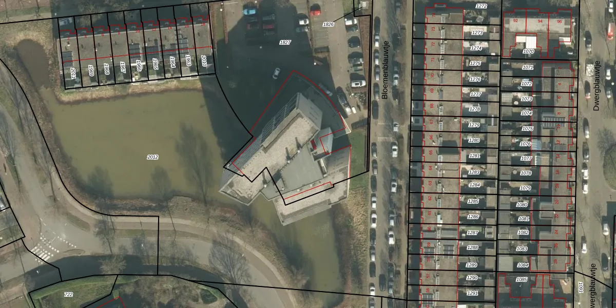 Het perceel waarop Blauwtjes 62 staat heeft een oppervlakte van 2862 m². Dit is een zeer groot perceel. De perceeloppervlakte wordt geregistreerd door het Kadaster. Gedetailleerde informatie over de maten van dit perceel kunt u vinden in het rapport Kadastrale kaart met maatvoering van Blauwtjes 62.
