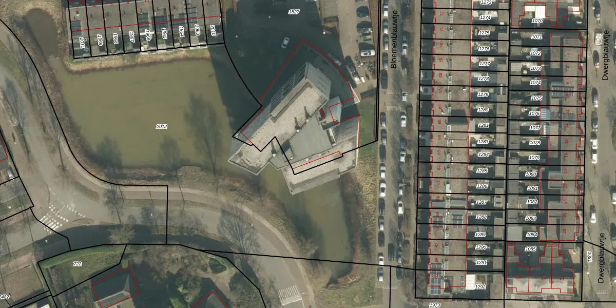 Het perceel waarop Blauwtjes 90 staat heeft een oppervlakte van 2862 m². Dit is een zeer groot perceel. De perceeloppervlakte wordt geregistreerd door het Kadaster. Gedetailleerde informatie over de maten van dit perceel kunt u vinden in het rapport Kadastrale kaart met maatvoering van Blauwtjes 90.