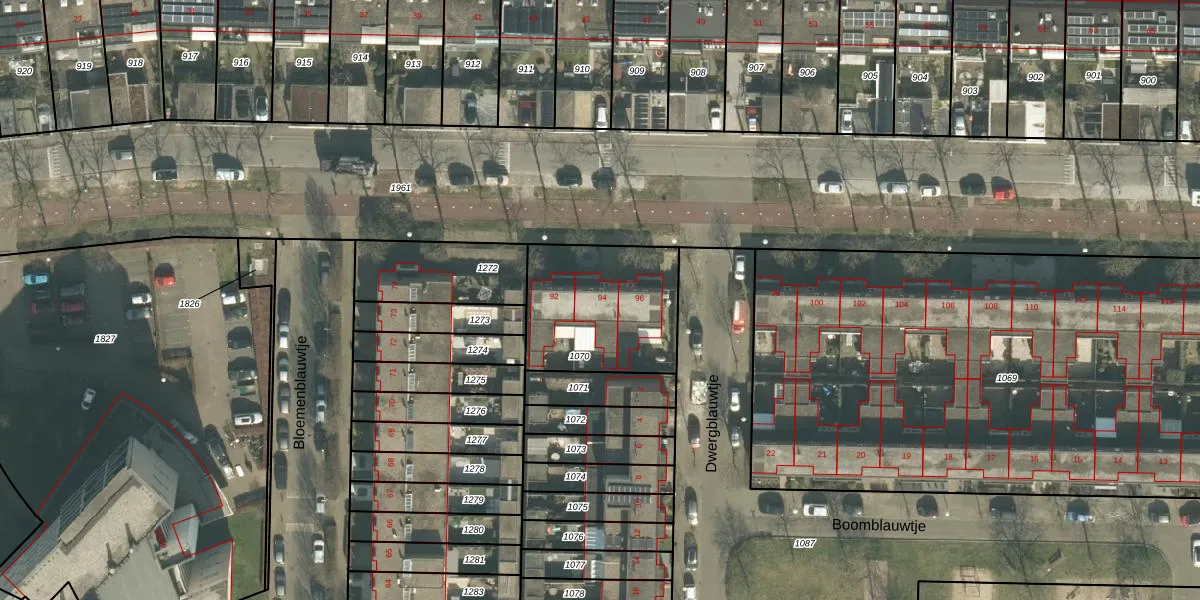 Blauwtjes 94 is gelegen op kadastraal perceel PCH00P1070. Deze kadastrale aanduiding is uniek en wordt gebruikt door het Kadaster om eigendomsrechten en andere zakelijke rechten vast te leggen. Het perceel maakt onderdeel uit van de kadastrale gemeente Princenhage.