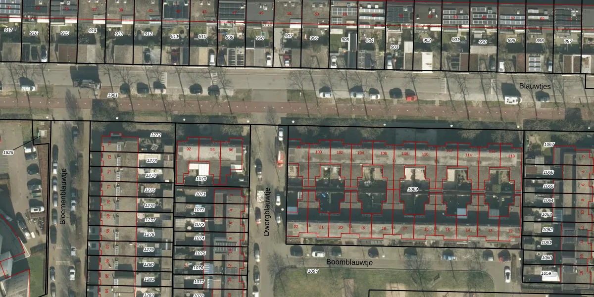 Blauwtjes 98 is gelegen op kadastraal perceel PCH00P1069. Deze kadastrale aanduiding is uniek en wordt gebruikt door het Kadaster om eigendomsrechten en andere zakelijke rechten vast te leggen. Het perceel maakt onderdeel uit van de kadastrale gemeente Princenhage.