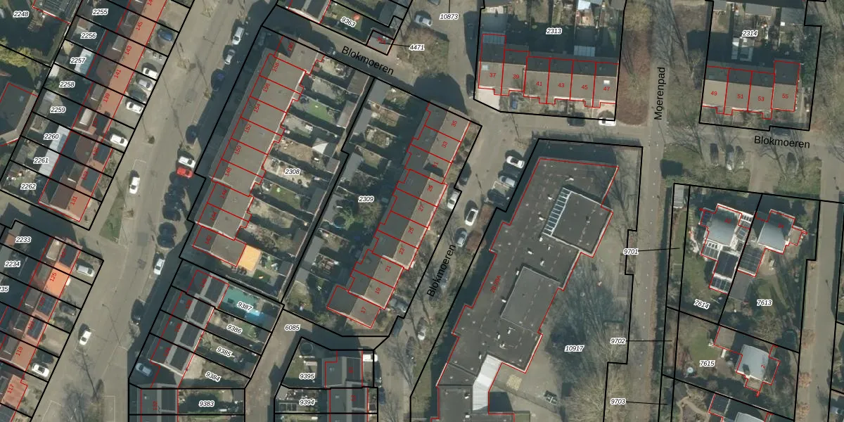 Het perceel waarop Blokmoeren 27 staat heeft een oppervlakte van 1619 m². Dit is een zeer groot perceel. De perceeloppervlakte wordt geregistreerd door het Kadaster. Gedetailleerde informatie over de maten van dit perceel kunt u vinden in het rapport Kadastrale kaart met maatvoering van Blokmoeren 27.