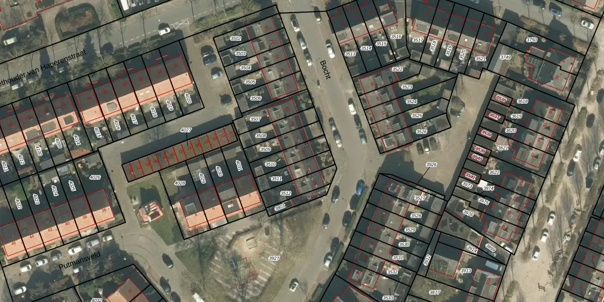 Het perceel waarop Bocht 39 staat heeft een oppervlakte van 137 m². Dit is een middelgroot perceel. De perceeloppervlakte wordt geregistreerd door het Kadaster. Gedetailleerde informatie over de maten van dit perceel kunt u vinden in het rapport Kadastrale kaart met maatvoering van Bocht 39.