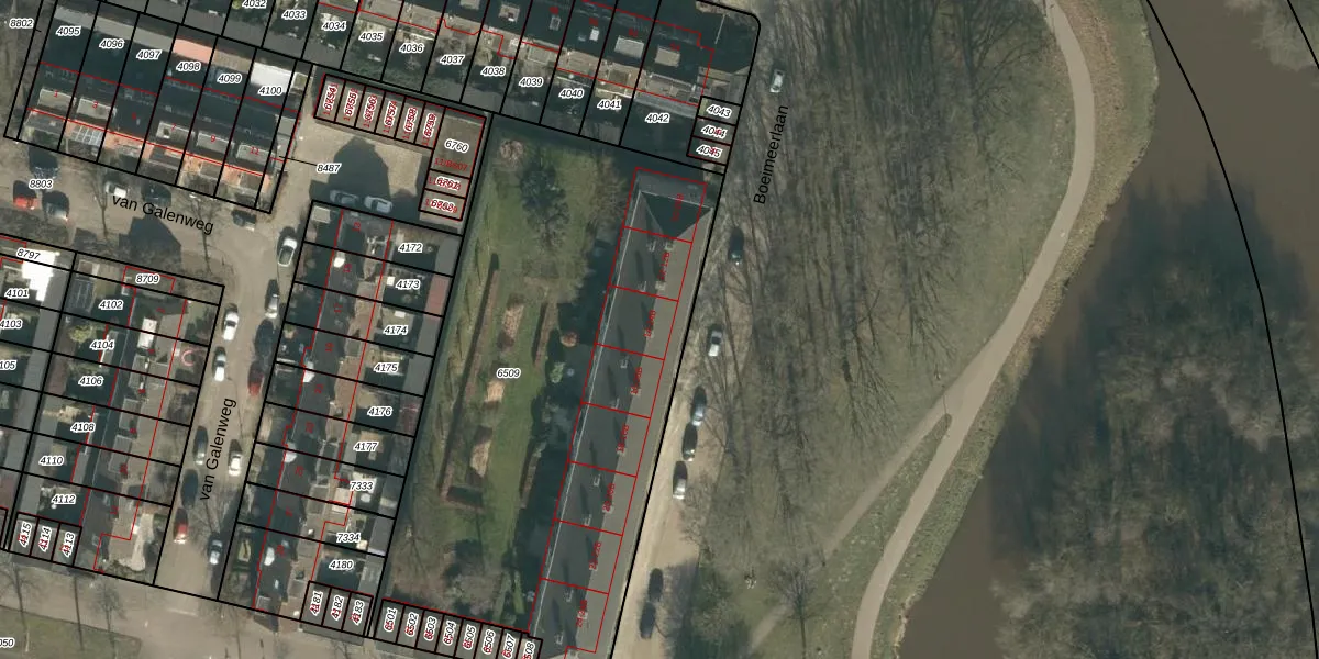 Boeimeerlaan 14 is gelegen op kadastraal perceel BDA00E6509. Deze kadastrale aanduiding is uniek en wordt gebruikt door het Kadaster om eigendomsrechten en andere zakelijke rechten vast te leggen. Het perceel maakt onderdeel uit van de kadastrale gemeente Breda.