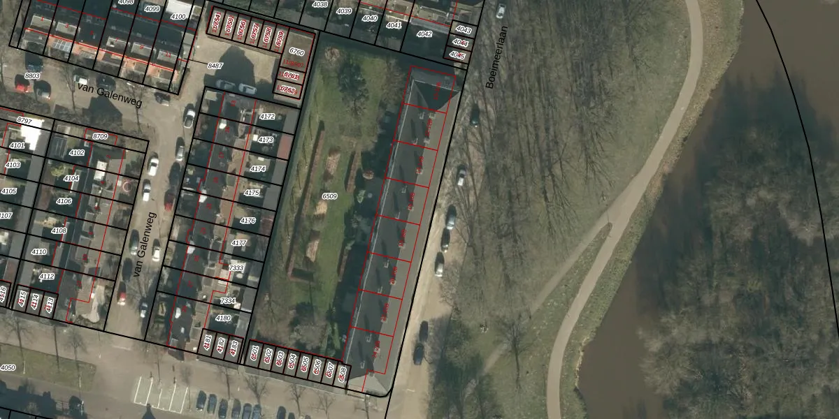 Boeimeerlaan 16 is gelegen op kadastraal perceel BDA00E6509. Deze kadastrale aanduiding is uniek en wordt gebruikt door het Kadaster om eigendomsrechten en andere zakelijke rechten vast te leggen. Het perceel maakt onderdeel uit van de kadastrale gemeente Breda.