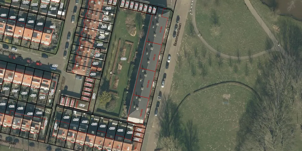 Boeimeerlaan 32-B is gelegen op kadastraal perceel BDA00E6518. Deze kadastrale aanduiding is uniek en wordt gebruikt door het Kadaster om eigendomsrechten en andere zakelijke rechten vast te leggen. Het perceel maakt onderdeel uit van de kadastrale gemeente Breda.