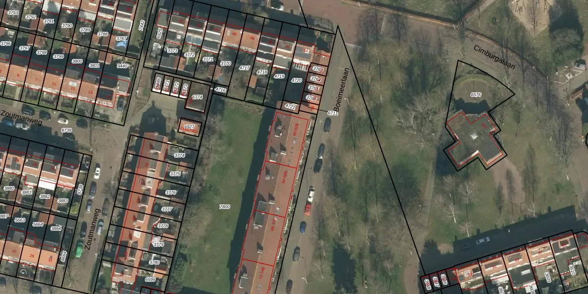 Het perceel waarop Boeimeerlaan 60-B staat heeft een oppervlakte van 2619 m². Dit is een zeer groot perceel. De perceeloppervlakte wordt geregistreerd door het Kadaster. Gedetailleerde informatie over de maten van dit perceel kunt u vinden in het rapport Kadastrale kaart met maatvoering van Boeimeerlaan 60-B.