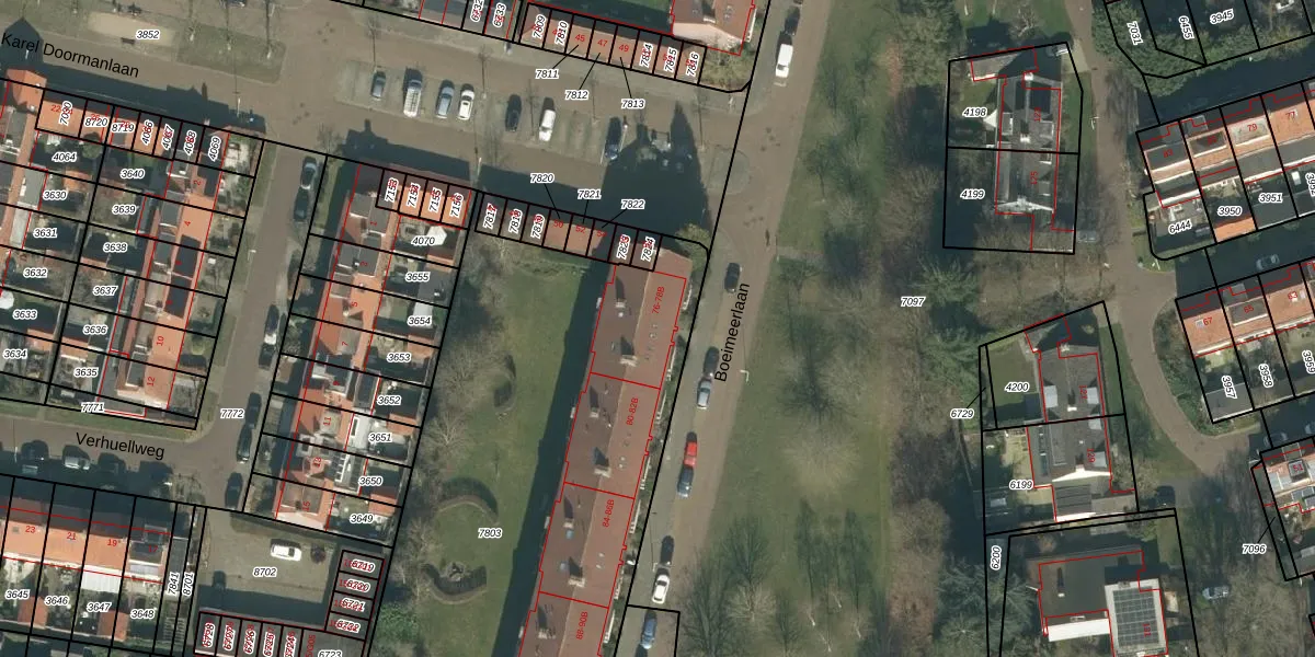 Boeimeerlaan 76-B is gelegen op kadastraal perceel BDA00E7803. Deze kadastrale aanduiding is uniek en wordt gebruikt door het Kadaster om eigendomsrechten en andere zakelijke rechten vast te leggen. Het perceel maakt onderdeel uit van de kadastrale gemeente Breda.