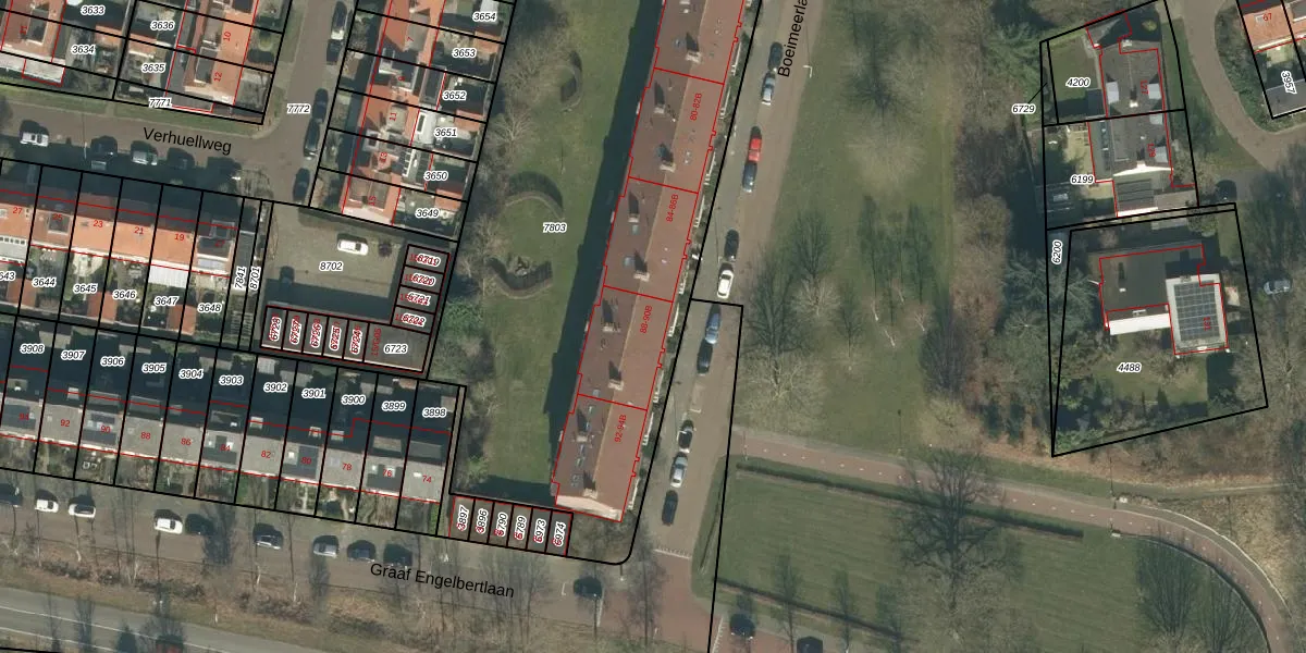 Boeimeerlaan 88-A is gelegen op kadastraal perceel BDA00E7803. Deze kadastrale aanduiding is uniek en wordt gebruikt door het Kadaster om eigendomsrechten en andere zakelijke rechten vast te leggen. Het perceel maakt onderdeel uit van de kadastrale gemeente Breda.