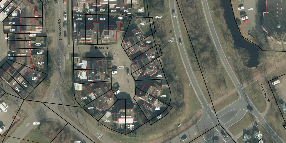 Het perceel waarop Boerenerf 8 staat heeft een oppervlakte van 227 m². Dit is een middelgroot perceel. De perceeloppervlakte wordt geregistreerd door het Kadaster. Gedetailleerde informatie over de maten van dit perceel kunt u vinden in het rapport Kadastrale kaart met maatvoering van Boerenerf 8.