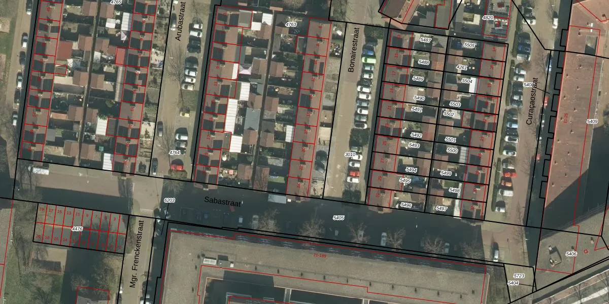 Het perceel waarop Bonairestraat 20 staat heeft een oppervlakte van 3265 m². Dit is een zeer groot perceel. De perceeloppervlakte wordt geregistreerd door het Kadaster. Gedetailleerde informatie over de maten van dit perceel kunt u vinden in het rapport Kadastrale kaart met maatvoering van Bonairestraat 20.