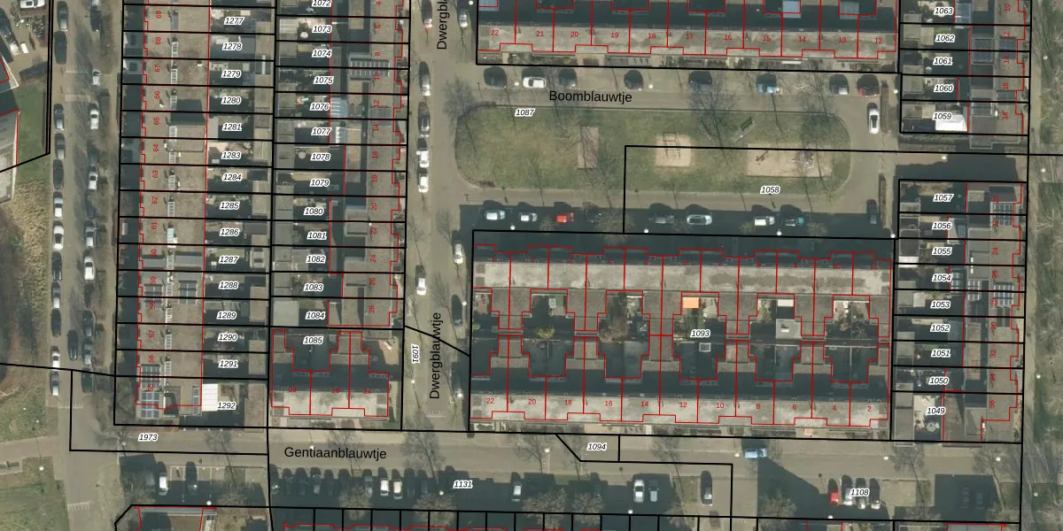 Het perceel waarop Boomblauwtje 2 staat heeft een oppervlakte van 3010 m². Dit is een zeer groot perceel. De perceeloppervlakte wordt geregistreerd door het Kadaster. Gedetailleerde informatie over de maten van dit perceel kunt u vinden in het rapport Kadastrale kaart met maatvoering van Boomblauwtje 2.