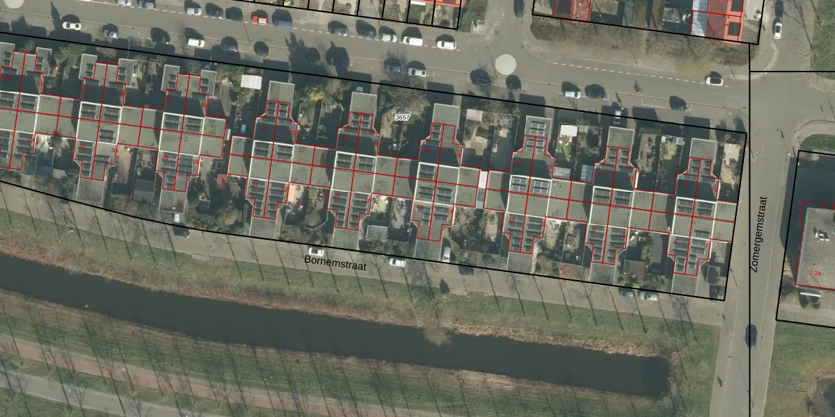 Bornemstraat 16 is gelegen op kadastraal perceel BDA00G3657. Deze kadastrale aanduiding is uniek en wordt gebruikt door het Kadaster om eigendomsrechten en andere zakelijke rechten vast te leggen. Het perceel maakt onderdeel uit van de kadastrale gemeente Breda.