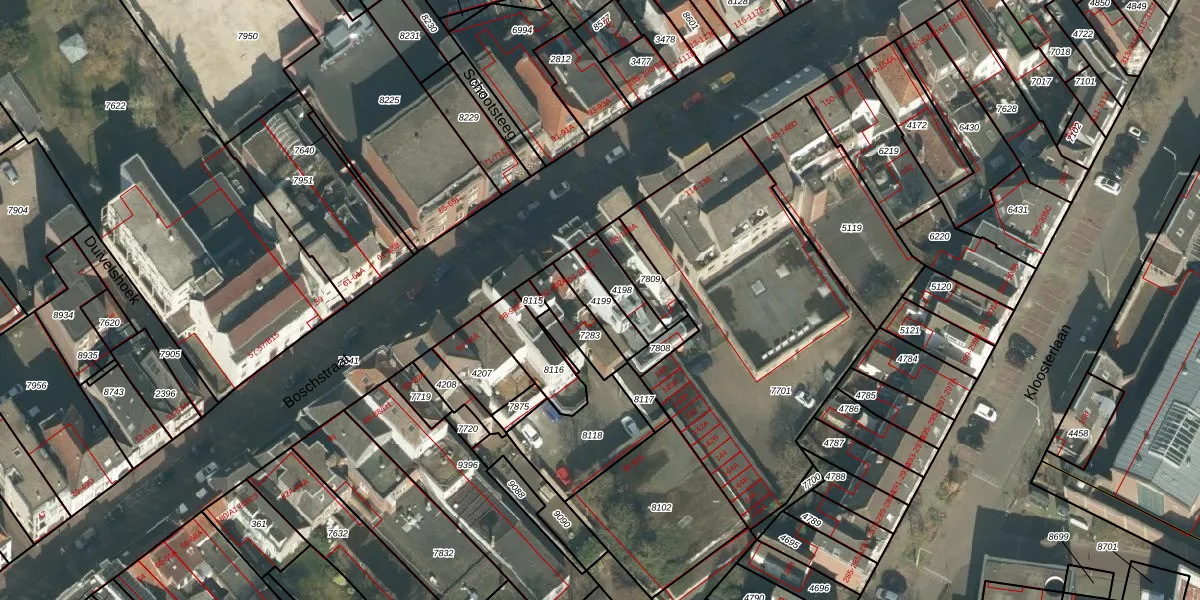 Boschstraat 104-B is gelegen op kadastraal perceel BDA00B4199. Deze kadastrale aanduiding is uniek en wordt gebruikt door het Kadaster om eigendomsrechten en andere zakelijke rechten vast te leggen. Het perceel maakt onderdeel uit van de kadastrale gemeente Breda.