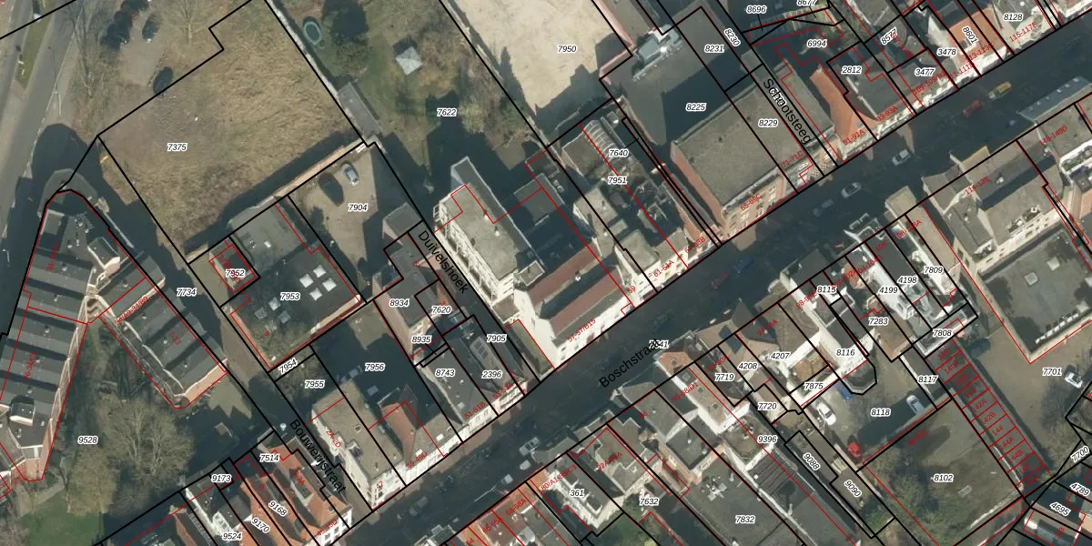 Boschstraat 57-B10 is gelegen op kadastraal perceel BDA00B7622. Deze kadastrale aanduiding is uniek en wordt gebruikt door het Kadaster om eigendomsrechten en andere zakelijke rechten vast te leggen. Het perceel maakt onderdeel uit van de kadastrale gemeente Breda.