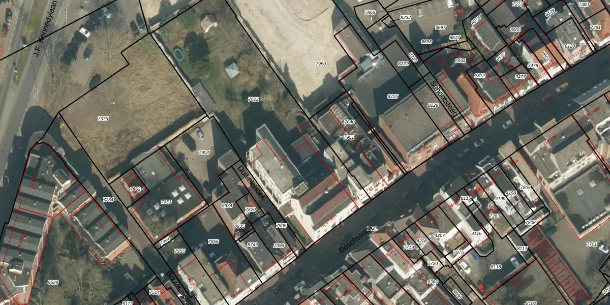 Boschstraat 57-B15 is gelegen op kadastraal perceel BDA00B7622. Deze kadastrale aanduiding is uniek en wordt gebruikt door het Kadaster om eigendomsrechten en andere zakelijke rechten vast te leggen. Het perceel maakt onderdeel uit van de kadastrale gemeente Breda.