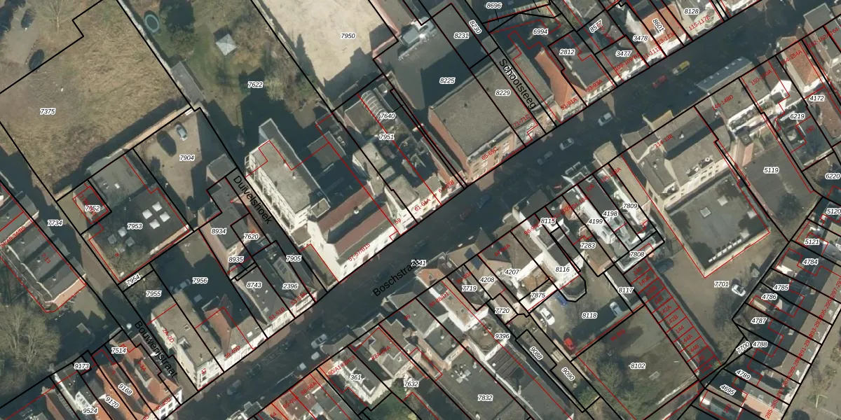 Boschstraat 61 is gelegen op kadastraal perceel BDA00B7951. Deze kadastrale aanduiding is uniek en wordt gebruikt door het Kadaster om eigendomsrechten en andere zakelijke rechten vast te leggen. Het perceel maakt onderdeel uit van de kadastrale gemeente Breda.