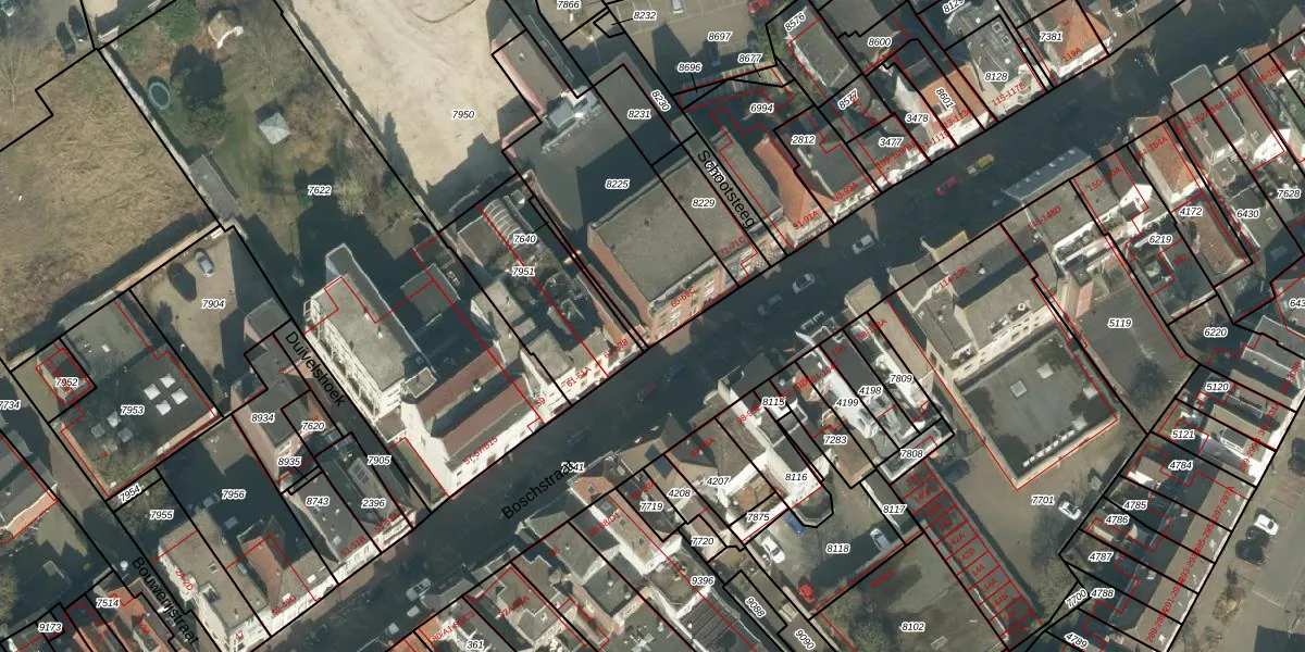 Boschstraat 65 is gelegen op kadastraal perceel BDA00B8225. Deze kadastrale aanduiding is uniek en wordt gebruikt door het Kadaster om eigendomsrechten en andere zakelijke rechten vast te leggen. Het perceel maakt onderdeel uit van de kadastrale gemeente Breda.