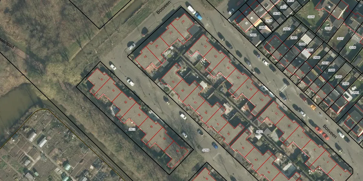 Bosveen 35 is gelegen op kadastraal perceel BDA00I2612. Deze kadastrale aanduiding is uniek en wordt gebruikt door het Kadaster om eigendomsrechten en andere zakelijke rechten vast te leggen. Het perceel maakt onderdeel uit van de kadastrale gemeente Breda.