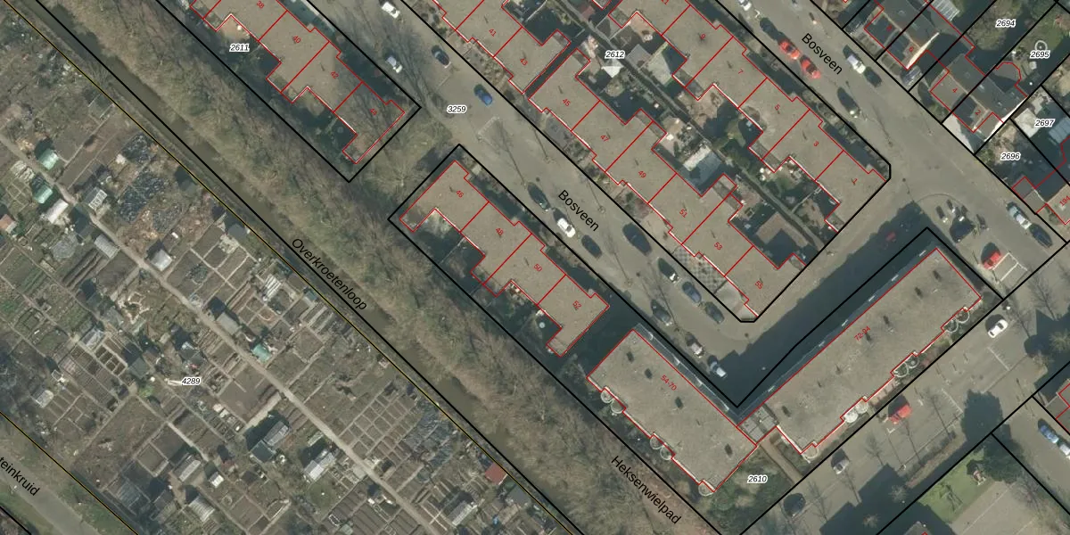 Bosveen 50 is gelegen op kadastraal perceel BDA00I2610. Deze kadastrale aanduiding is uniek en wordt gebruikt door het Kadaster om eigendomsrechten en andere zakelijke rechten vast te leggen. Het perceel maakt onderdeel uit van de kadastrale gemeente Breda.