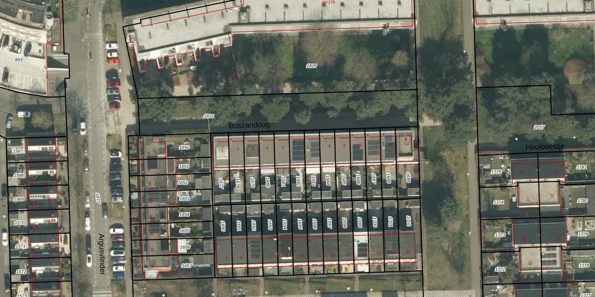 Gebruik de zoekbalk of klik op een perceel voor informatie over de adressen binnen dit perceel.