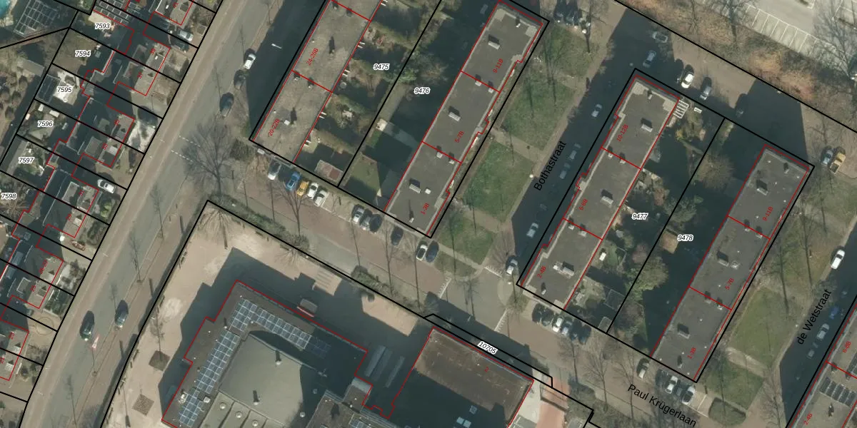 Bothastraat 1 is gelegen op kadastraal perceel BDA00D9476. Deze kadastrale aanduiding is uniek en wordt gebruikt door het Kadaster om eigendomsrechten en andere zakelijke rechten vast te leggen. Het perceel maakt onderdeel uit van de kadastrale gemeente Breda.