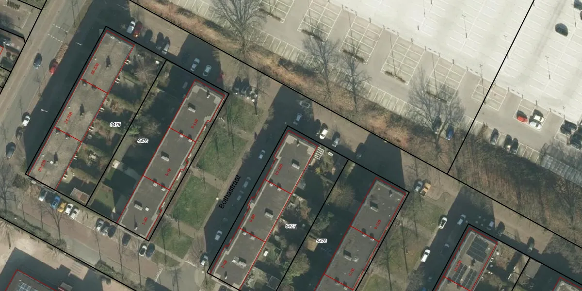 Bothastraat 12 is gelegen op kadastraal perceel BDA00D9477. Deze kadastrale aanduiding is uniek en wordt gebruikt door het Kadaster om eigendomsrechten en andere zakelijke rechten vast te leggen. Het perceel maakt onderdeel uit van de kadastrale gemeente Breda.