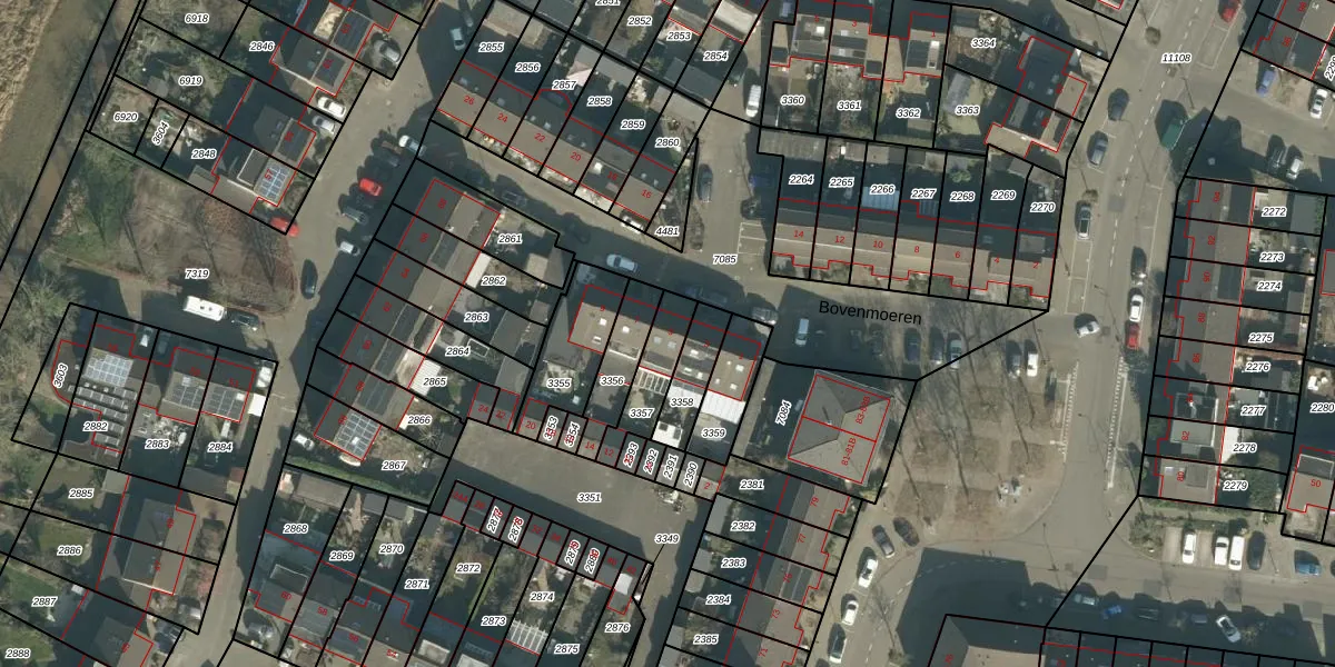 Bovenmoeren 5 is gelegen op kadastraal perceel BDA00H3357. Deze kadastrale aanduiding is uniek en wordt gebruikt door het Kadaster om eigendomsrechten en andere zakelijke rechten vast te leggen. Het perceel maakt onderdeel uit van de kadastrale gemeente Breda.