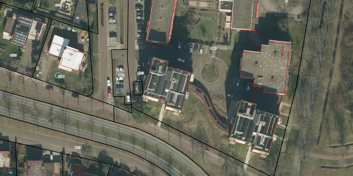 Het perceel waarop Brahmslaan 2-D2 staat heeft een oppervlakte van 1,9 ha. Dit is een zeer groot perceel. De perceeloppervlakte wordt geregistreerd door het Kadaster. Gedetailleerde informatie over de maten van dit perceel kunt u vinden in het rapport Kadastrale kaart met maatvoering van Brahmslaan 2-D2.
