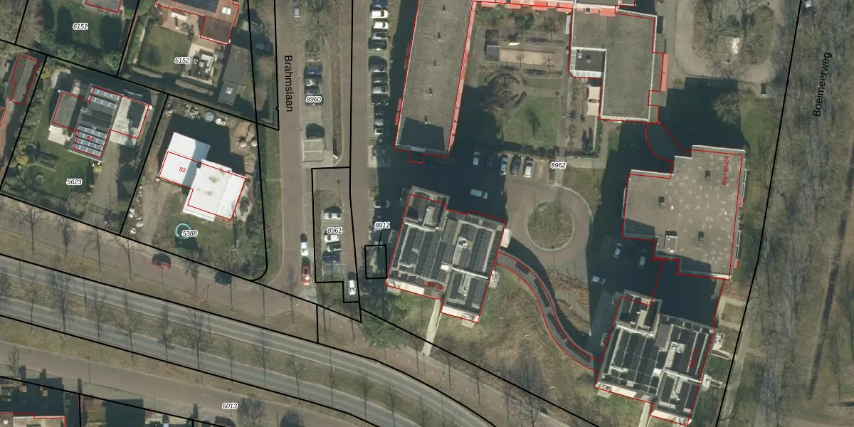 Het perceel waarop Brahmslaan 2-D6 staat heeft een oppervlakte van 1,9 ha. Dit is een zeer groot perceel. De perceeloppervlakte wordt geregistreerd door het Kadaster. Gedetailleerde informatie over de maten van dit perceel kunt u vinden in het rapport Kadastrale kaart met maatvoering van Brahmslaan 2-D6.