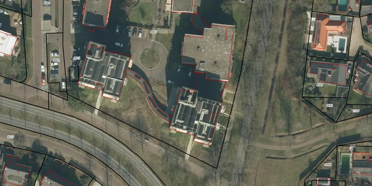 Het perceel waarop Brahmslaan 4-E6 staat heeft een oppervlakte van 1,9 ha. Dit is een zeer groot perceel. De perceeloppervlakte wordt geregistreerd door het Kadaster. Gedetailleerde informatie over de maten van dit perceel kunt u vinden in het rapport Kadastrale kaart met maatvoering van Brahmslaan 4-E6.