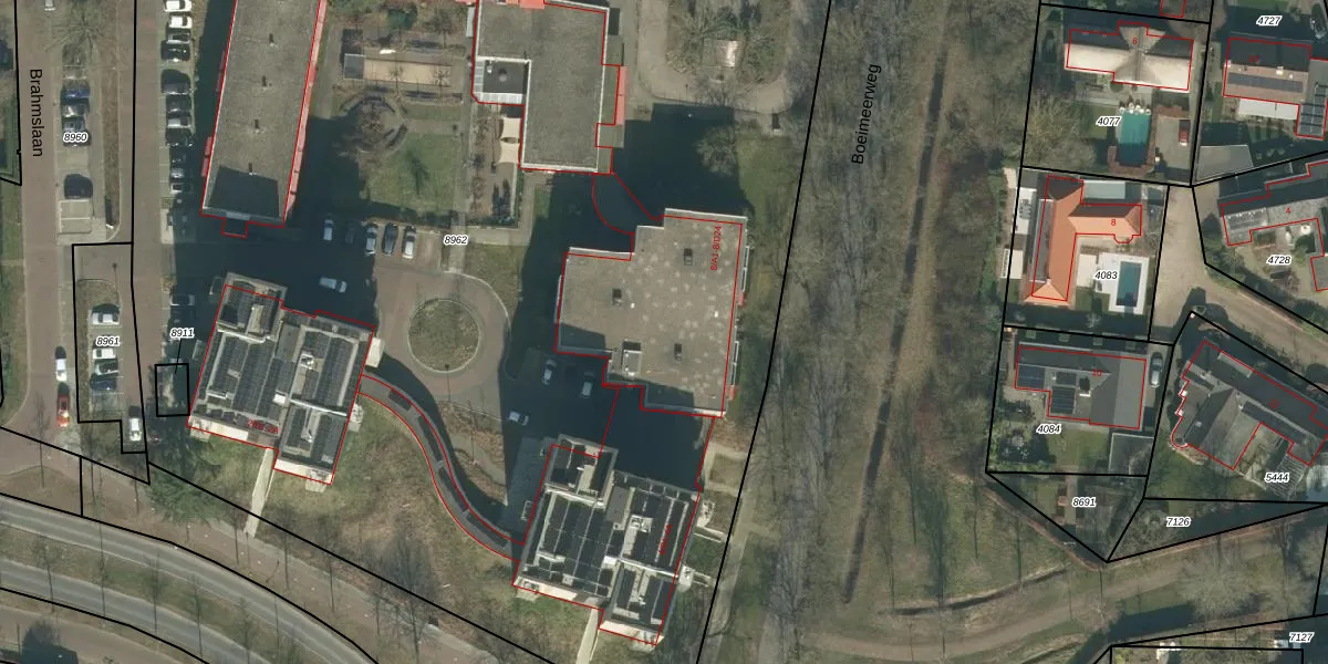 Het perceel waarop Brahmslaan 8-A4 staat heeft een oppervlakte van 1,9 ha. Dit is een zeer groot perceel. De perceeloppervlakte wordt geregistreerd door het Kadaster. Gedetailleerde informatie over de maten van dit perceel kunt u vinden in het rapport Kadastrale kaart met maatvoering van Brahmslaan 8-A4.